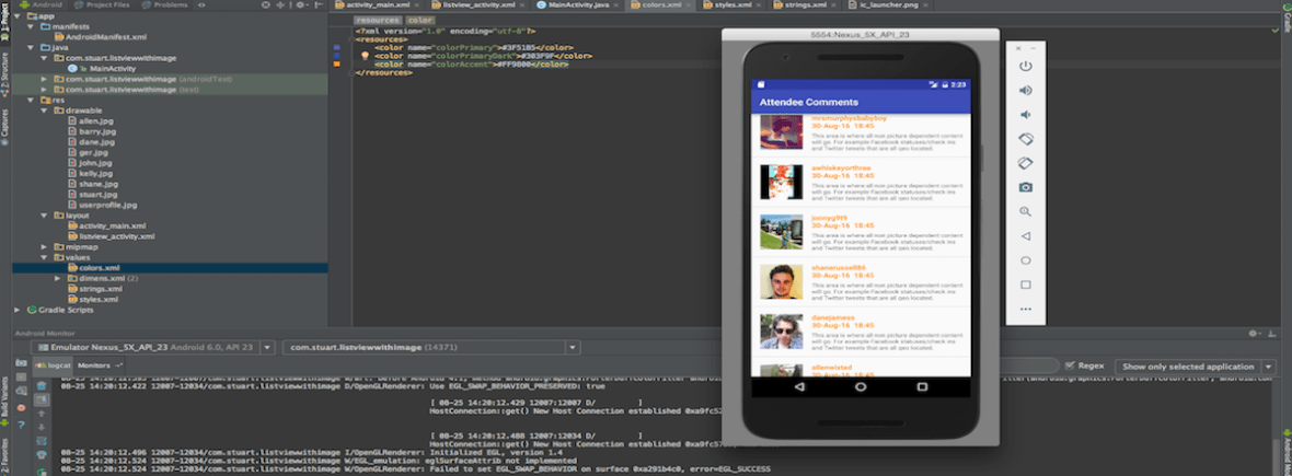 After numerous tested iterative designs, it was possible to begin development of the app. Earlier prototypes should have eliminated all major flaws at this point. I will be vague about the development process for two reasons. Firstly, I don’t want to reveal any coding techniques that are my own. Secondly, writing about code can be quite long winded and essentially confusing without seeing the syntax. So in short, the objective was to replicate the design screens, created with Photoshop, as close as possible whilst adding functionality. Android Studio 2.1 was used to develop this app. Numerous APIs were used to access the required data such as user location, POIs details and recent POI content on social media that could potentially illustrate its recent activity. The screen layouts were created using XML files and the application behavior was determined by the Java files. The SDK (Software Development Kit) platform tool used was version 23. In order to demonstrate the proof of concept, one social media API was used for the testing stages.