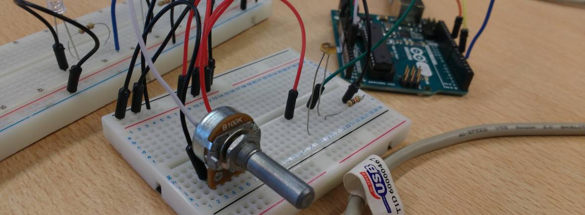 The concept behind this project was to create an audio visual which was driven by external inputs. Pure Data is used to create both the audio and the visual components. Arduino is employed in order to generate incoming data. The circuitry which drives the audiovisual is made up of a potentiometer, a photocell and 10K resistor. User interaction determines what the values might be i.e. twisting the pot or covering the photocell. Additionally 3 LEDs and 3 220 Ohm resistors were implemented into the circuit to provide an output light display.